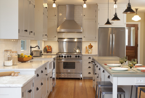 If using metal finish kitchen appliances, try to use the same metal finish throughout the kitchen.