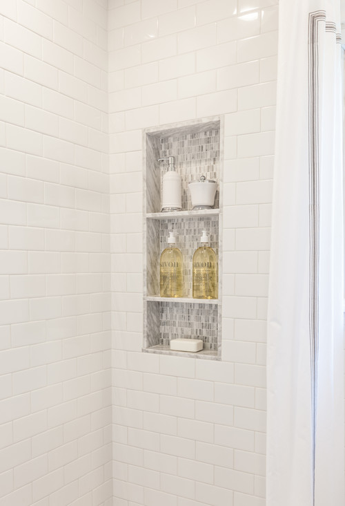 This space is especially helpful in a shower because people like to put recessed shampoo cubbies between the wall studs for extra storage.