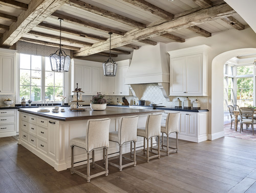 Natural flooring, such as wood (sometimes painted wood), slate, or brick floors are popular in cottage kitchens.